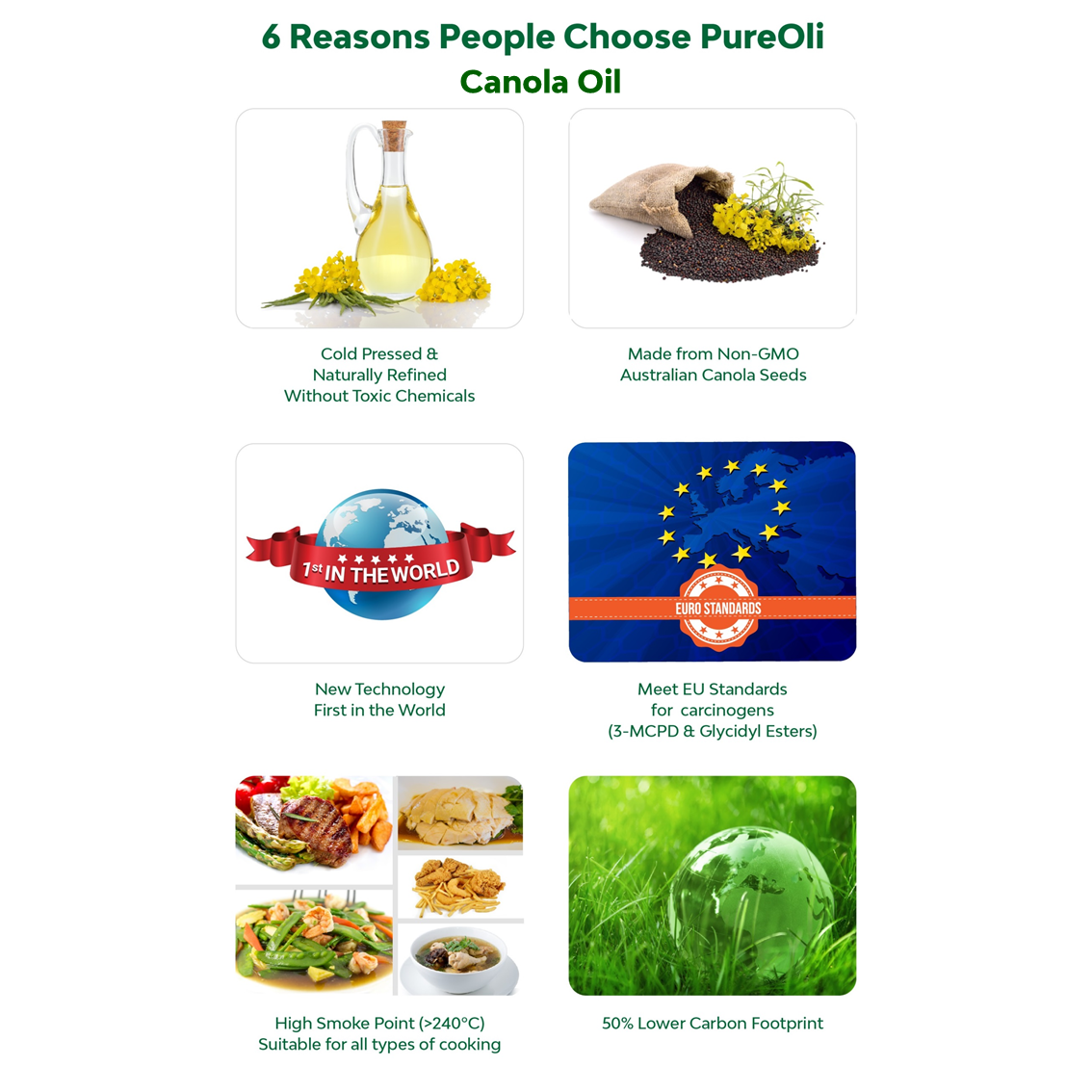 It is environmentally green, with a 50% lower carbon footprint when compared to conventional cooking oil.